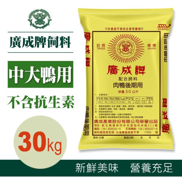 適用期:4週齡之小鴨~出售之肉鴨使用。